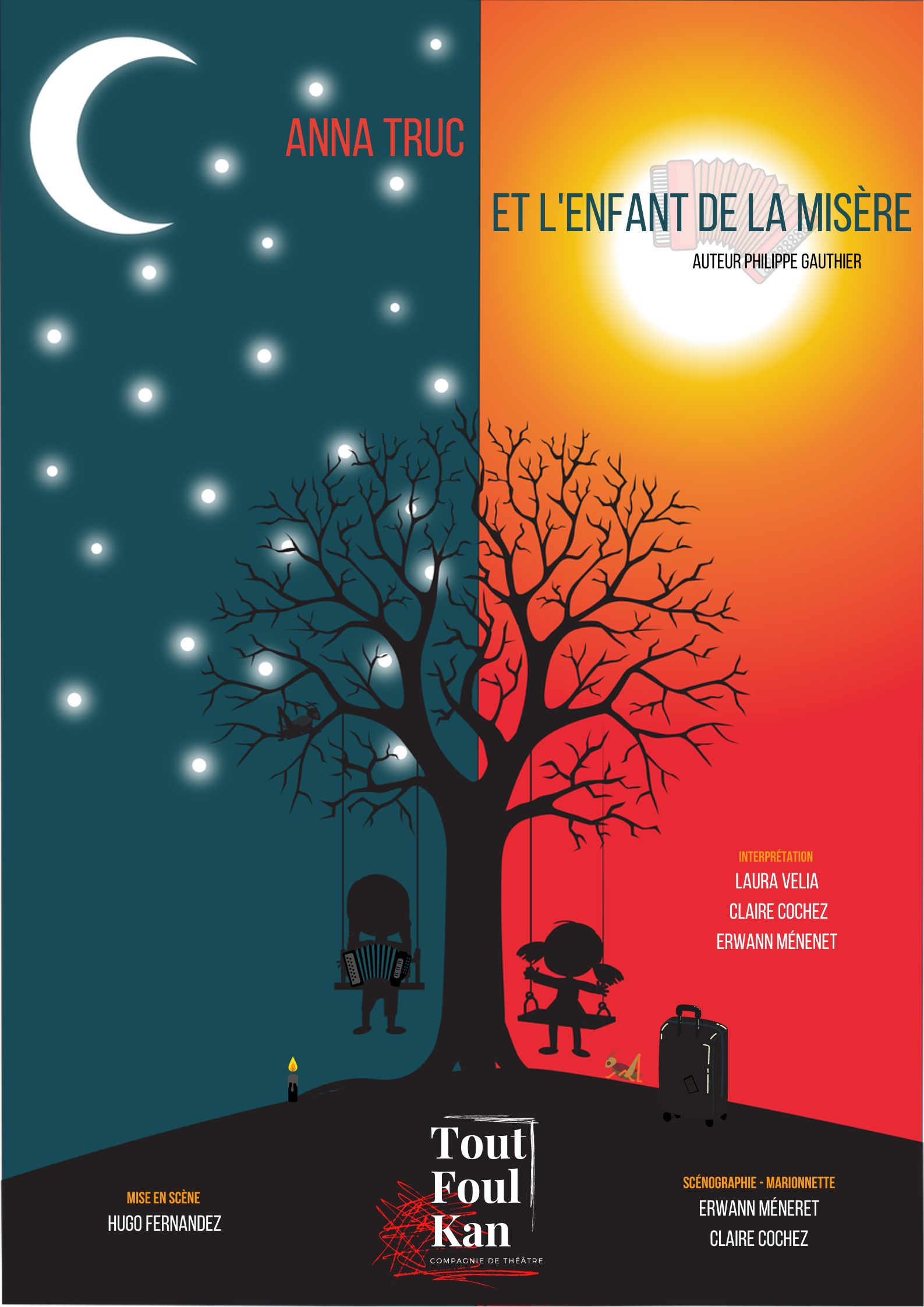 C’est l’histoire d’une rencontre entre deux personnages et une sauterelle. Une jeune femme de 21 ans, Anna, une jeune fille de 7 ans, La Mioche ainsi que Jimmy une sauterelle à la pâte cassée. Là, deux balançoires, elles tournent autour pour mieux s’apprivoiser, elles apprennent à se connaître, se disputent, rient, pleurent et jouent ensemble. Derrière cette rencontre une histoire sombre les lie, un passé douloureux, étrangement commun. Qui sont-elles l’une pour l’autre ? Amies ? Imaginaires ? Jumelles ? Sœurs ? Une seule et même personne ? Anna se retrouverait-elle confronté à son enfant intérieur ? Face à l’image de son passé ? A chacun de s’inventer son histoire. L’une face à l’autre comme dans un miroir, elles découvrent l’amour, l’amour qui aide à vivre, à affronter la vie, le quotidien, un passé pas toujours heureux, des secrets qui les accompagnent pour le meilleur comme pour le pire et cela à jamais. Leur secret avec lequel elles finiront par se réconcilier.